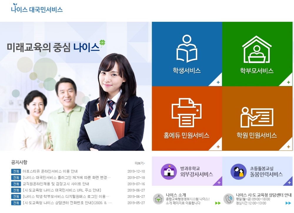 우선 책상에 앉아서 컴퓨터를 킨 후에 나이스 대국민서비스 홈페이지로 접속을 합니다.