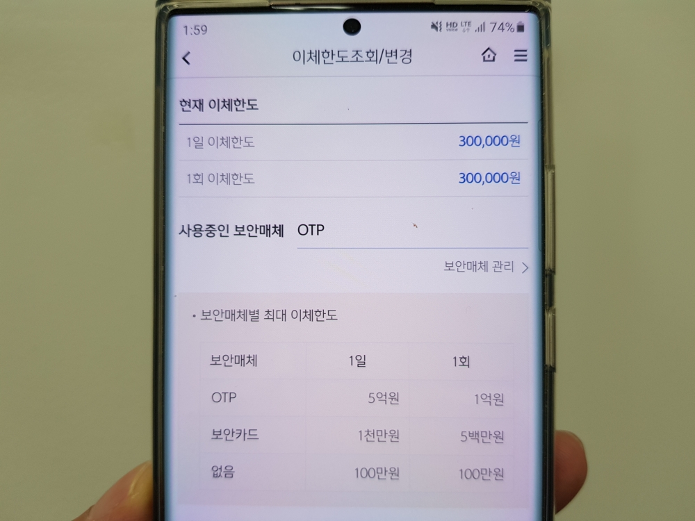 이 정도만 돼도 크게 불편함은 없지만 어느 날 모바일뱅킹을 통해 300만원 이상 이체를 해야 되는데 안될 경우 난감한 상황이 발생할 수 있습니다. 아래 방법을 통해 해제를 하게 되면 정상계좌로 이용이 가능합니다.